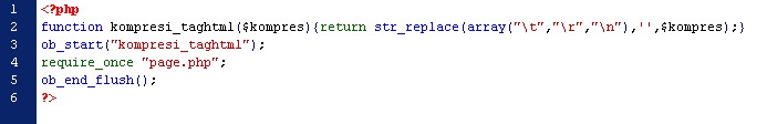 Setelah itu coba kita lihat dibrowser hasil dari kode diatas dengan melihat source (View Page Source), apabila hasil tampilan menjadi satu baris maka proses kompresi berhasil