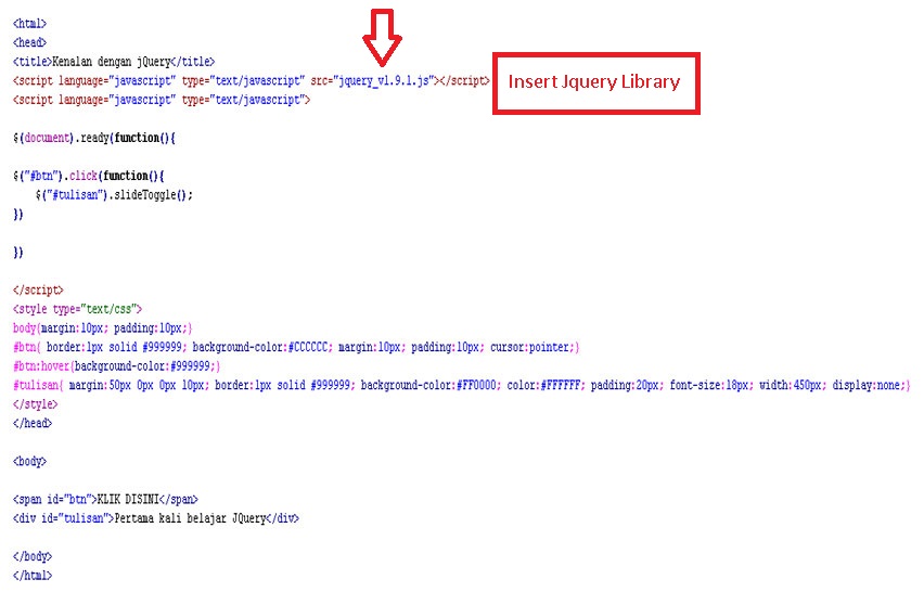 • Download Jquery library nya di website ini